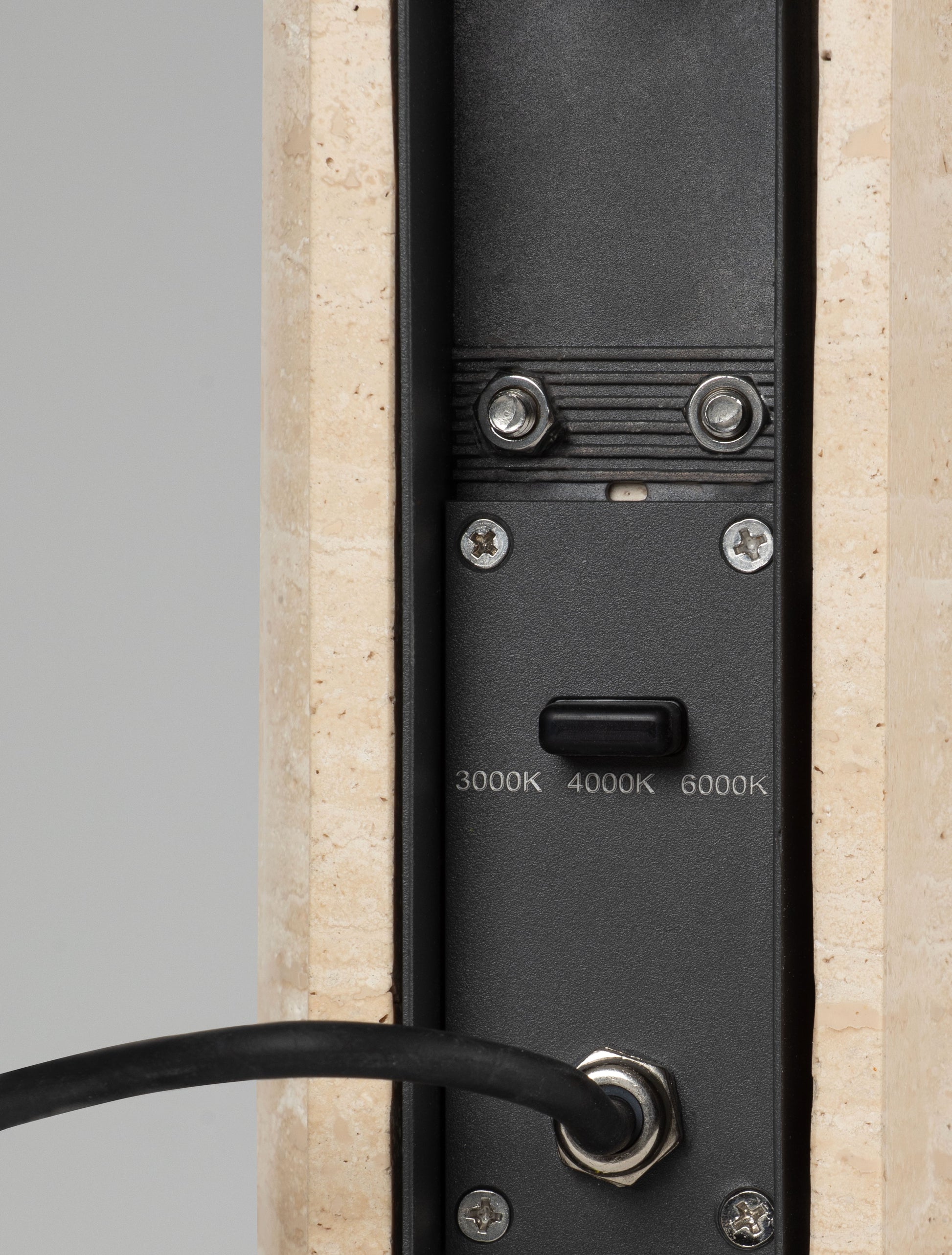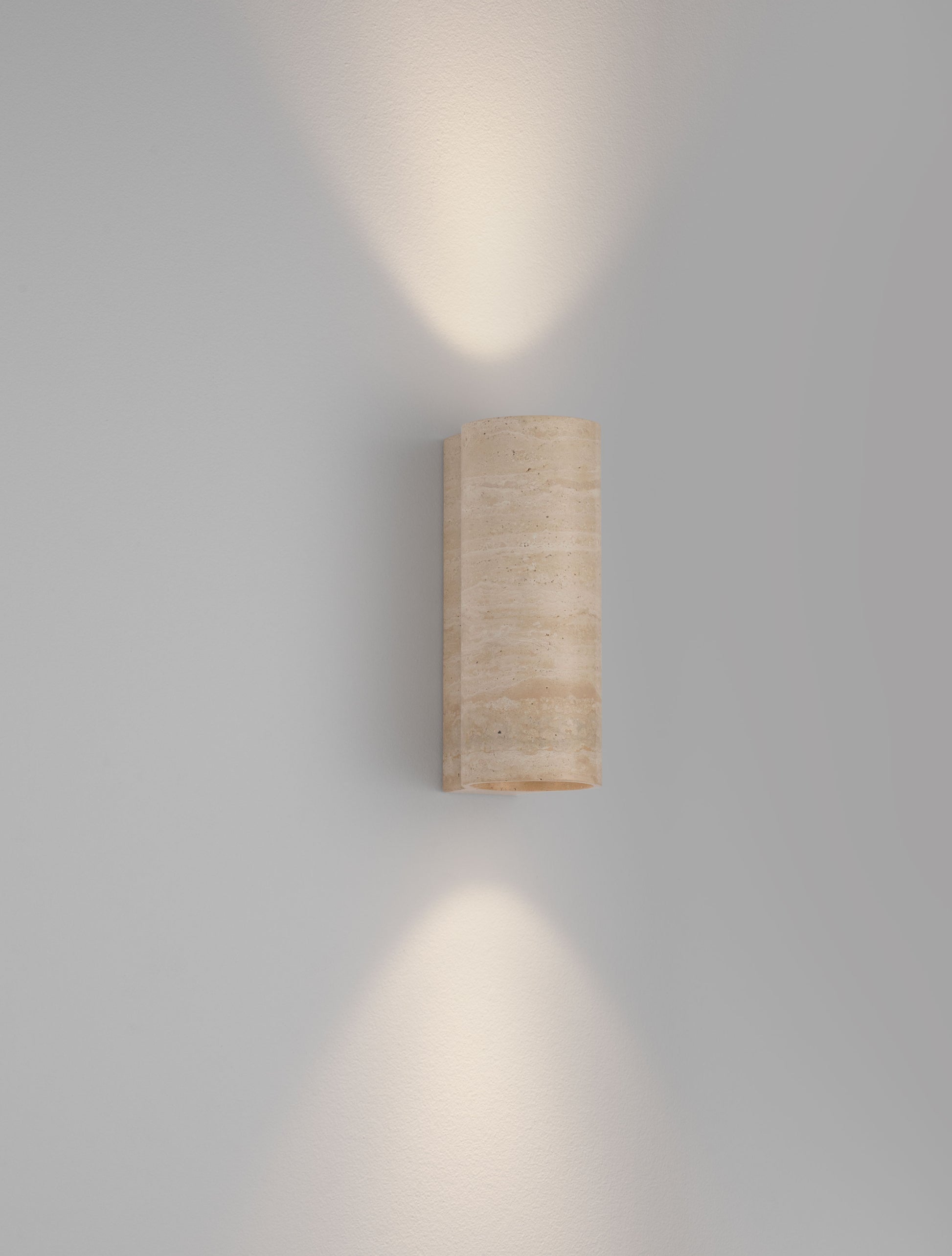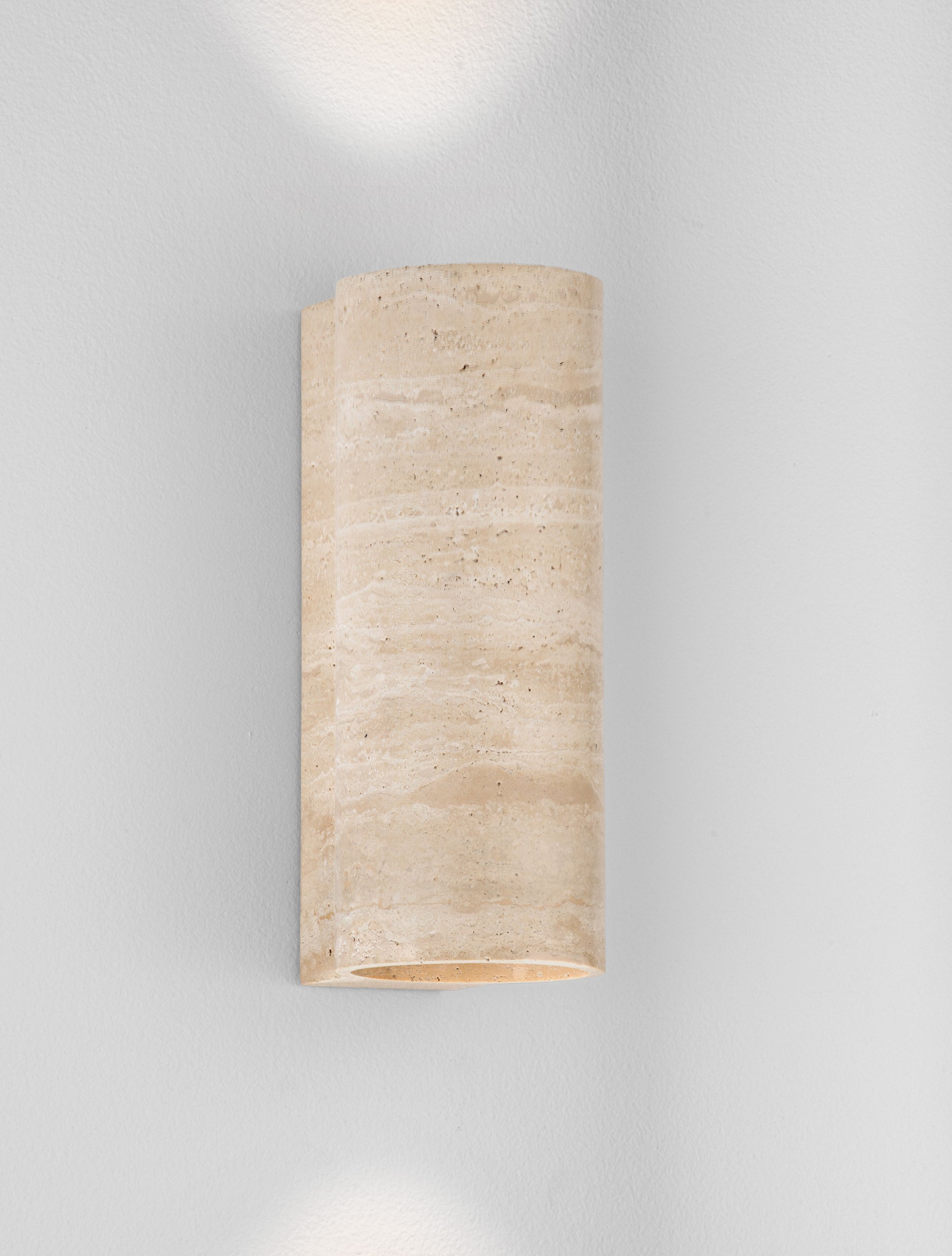 Introduser en følelse av ro og delikate løsninger i ditt hjem med denne utsøkte vegglampen. Laget av den fineste beige-hvite marmor-travertin, utstråler den en varm og naturlig glød som vil forvandle ethvert rom. Hver lampe er unik, med naturlige årer og teksturer som forteller en historie om jordens skjønnhet.