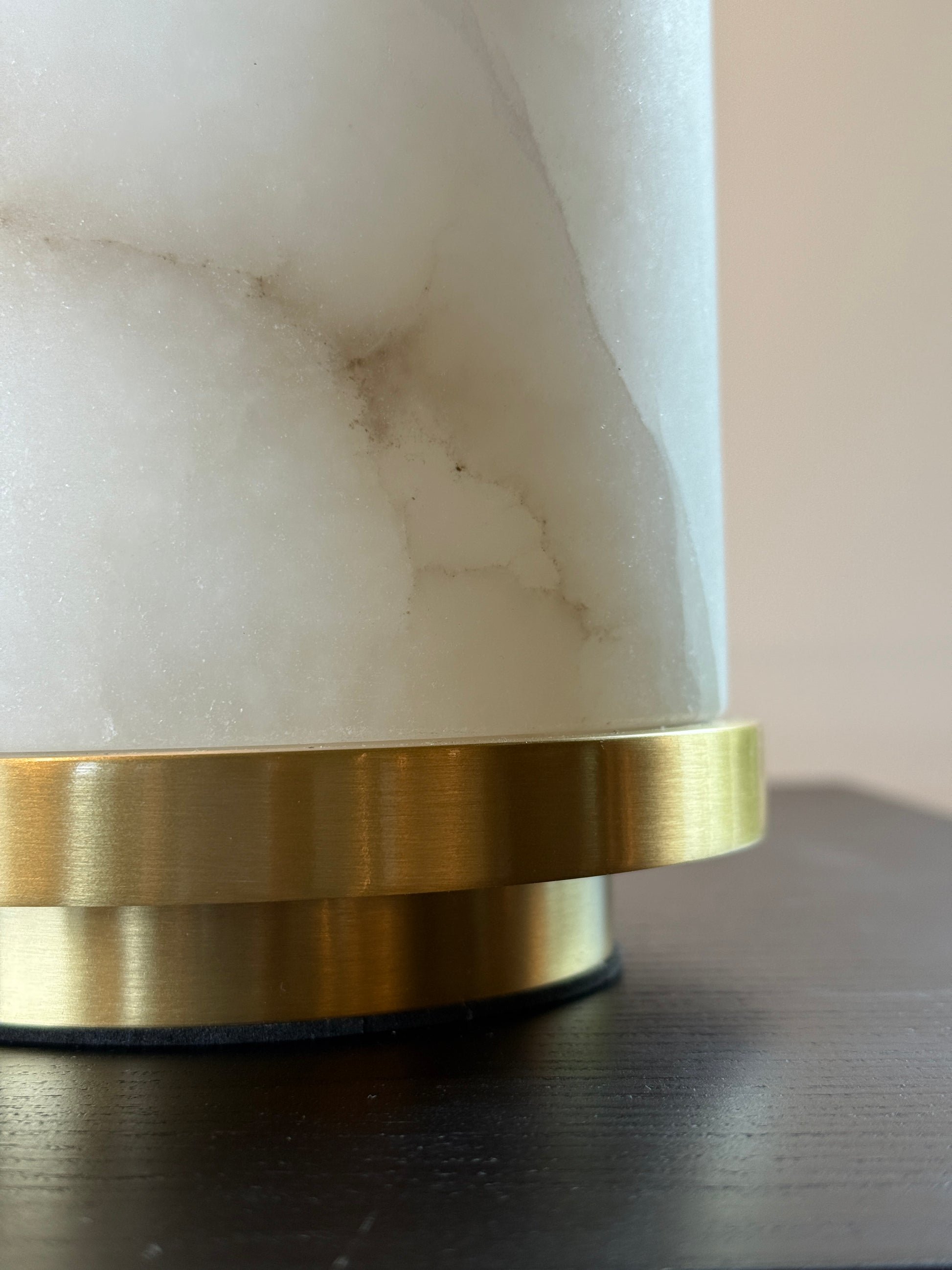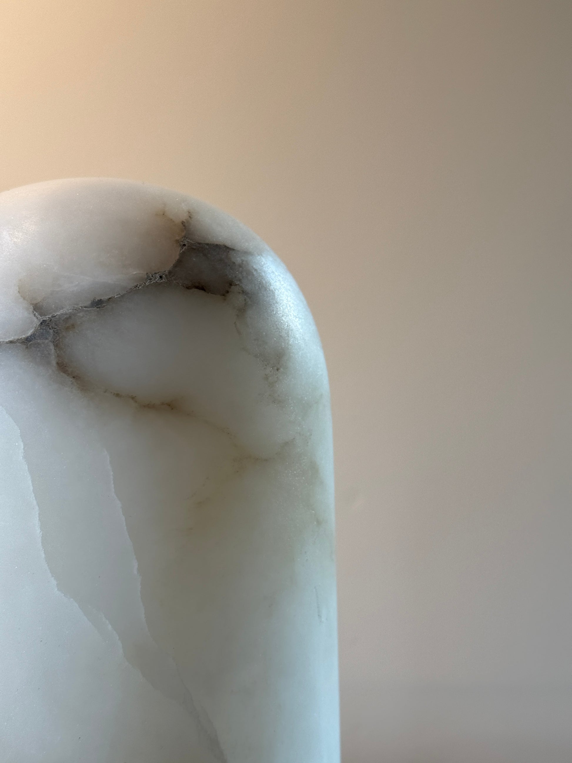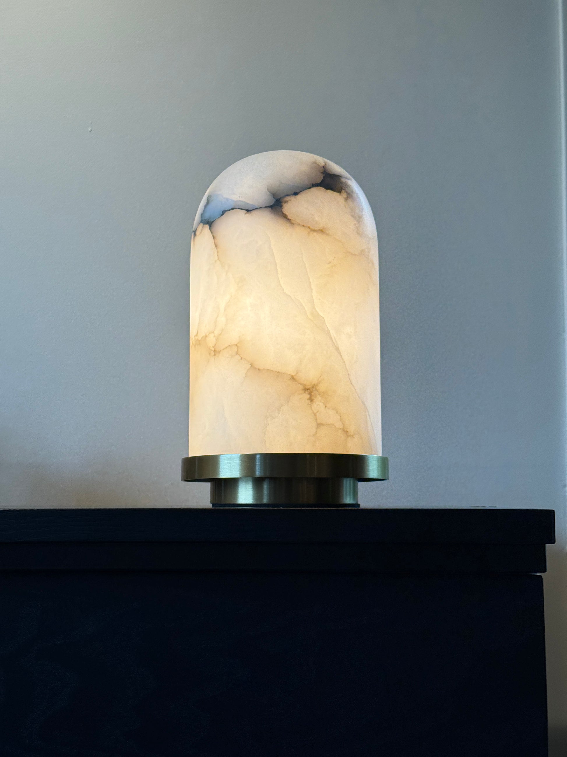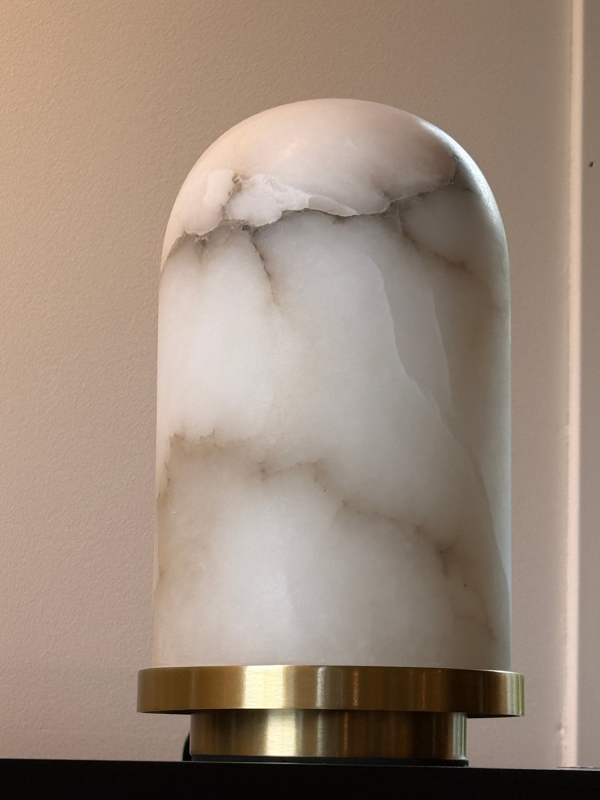 Hver Luna-lampe er håndlaget av autentisk spansk alabast, en stein som er kjent for sin unike evne til å la lyset skinne gjennom med en varm og myk glød. Dette naturlige materialet sørger for at ingen lamper er helt like. De karakteristiske marmoreringene og mønstrene er naturens egen signatur, noe som gjør din Luna-lampe helt spesiell og personlig
