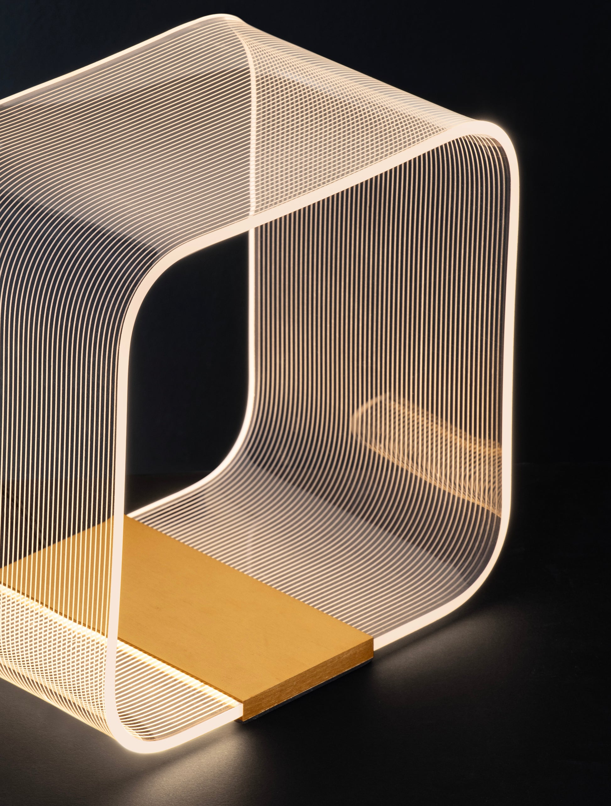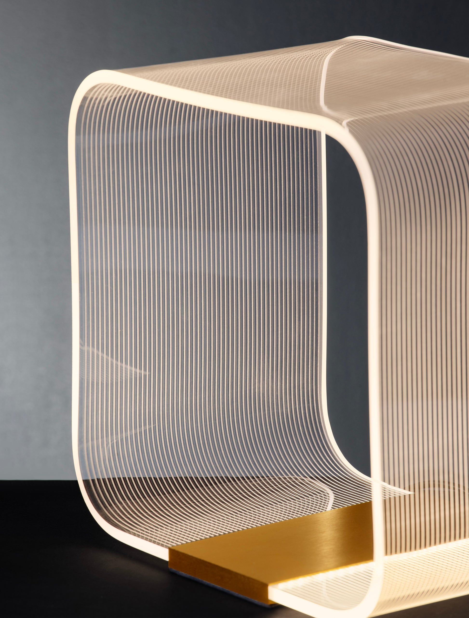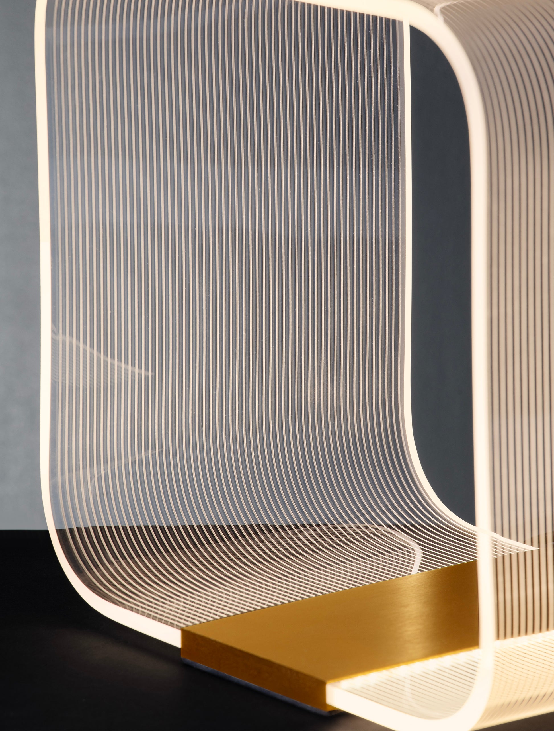 Dette er en moderne og skulpturell bordlampe med et unikt, lagdelt design. Den er laget av messing/aluminium og akryl, noe som skaper en vakker kontrast mellom den varme metalliske basen og den gjennomsiktige, lysfylte strukturen. Den integrerte LED-lyskilden avgir et mykt, varmt hvitt lys (3000K) med en lysstyrke på 786 lumen, perfekt for å skape en koselig atmosfære. Lampen er dimbar, slik at du kan justere lysintensiteten etter dine preferanser.