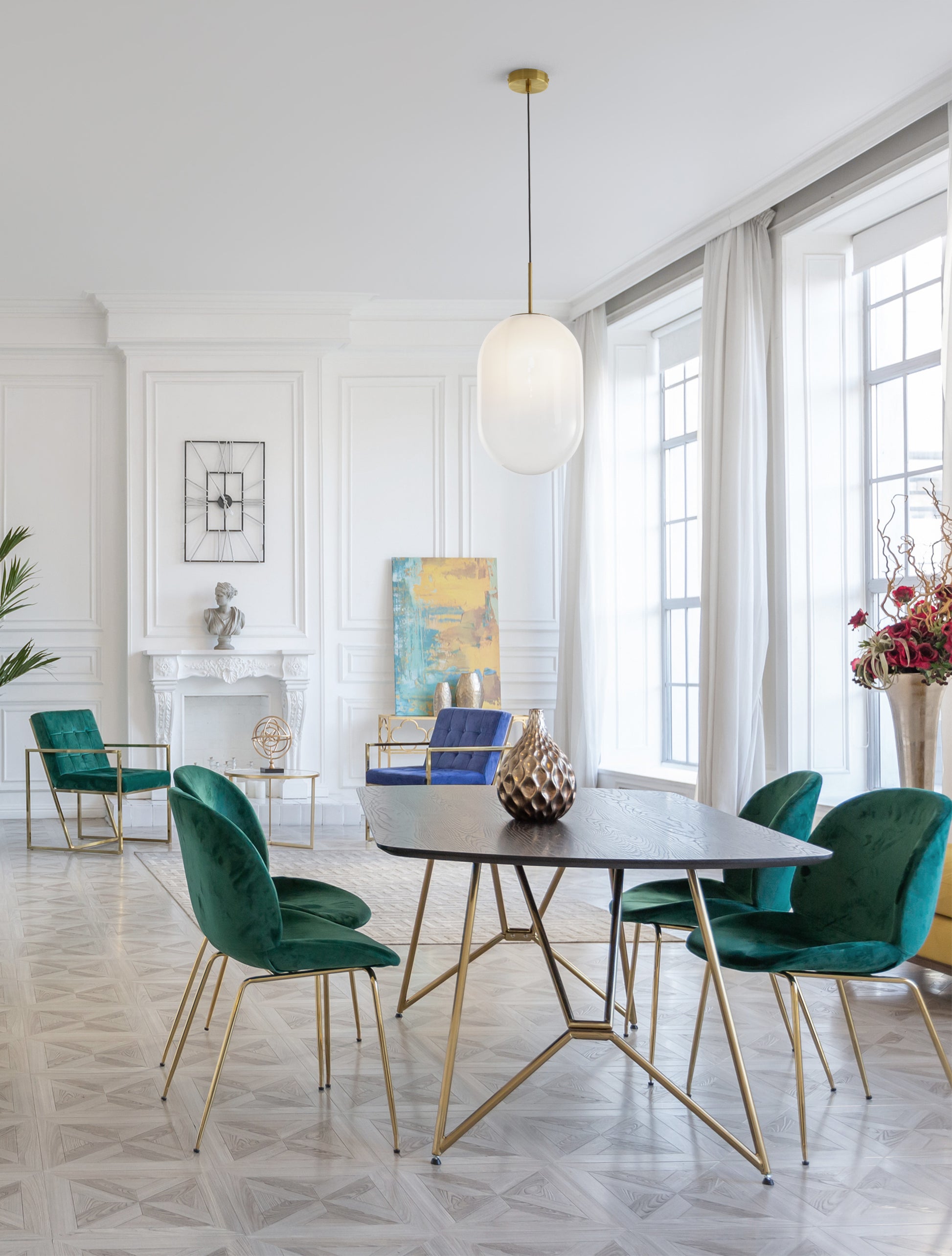 - Messing Gul Metal Gradient Hvit Glass