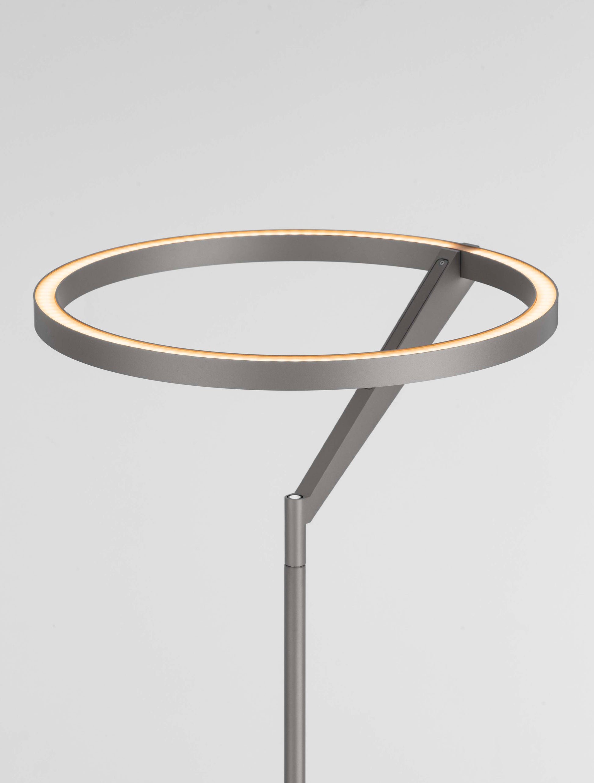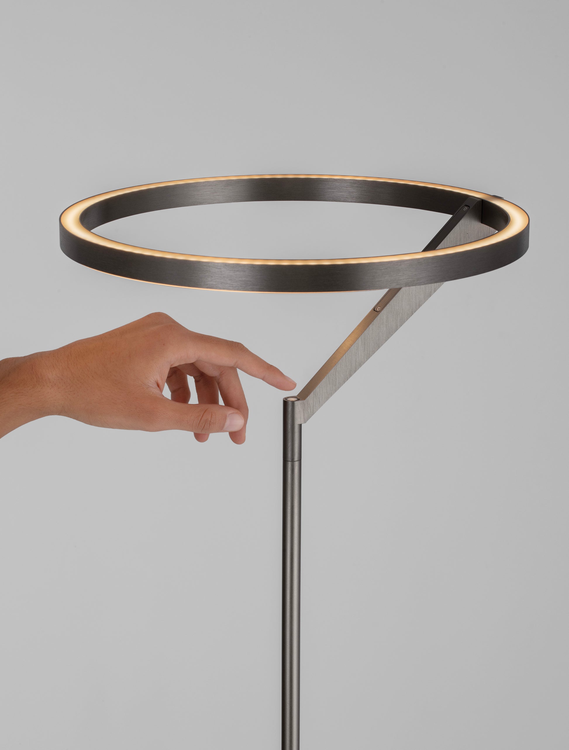 Lampen har en unik og iøynefallende design med en sirkulær form og en slank profil. Den "børstet nickel" fargen gir lampen et moderne og sofistikert utseende som passer godt inn i ulike interiørstiler.