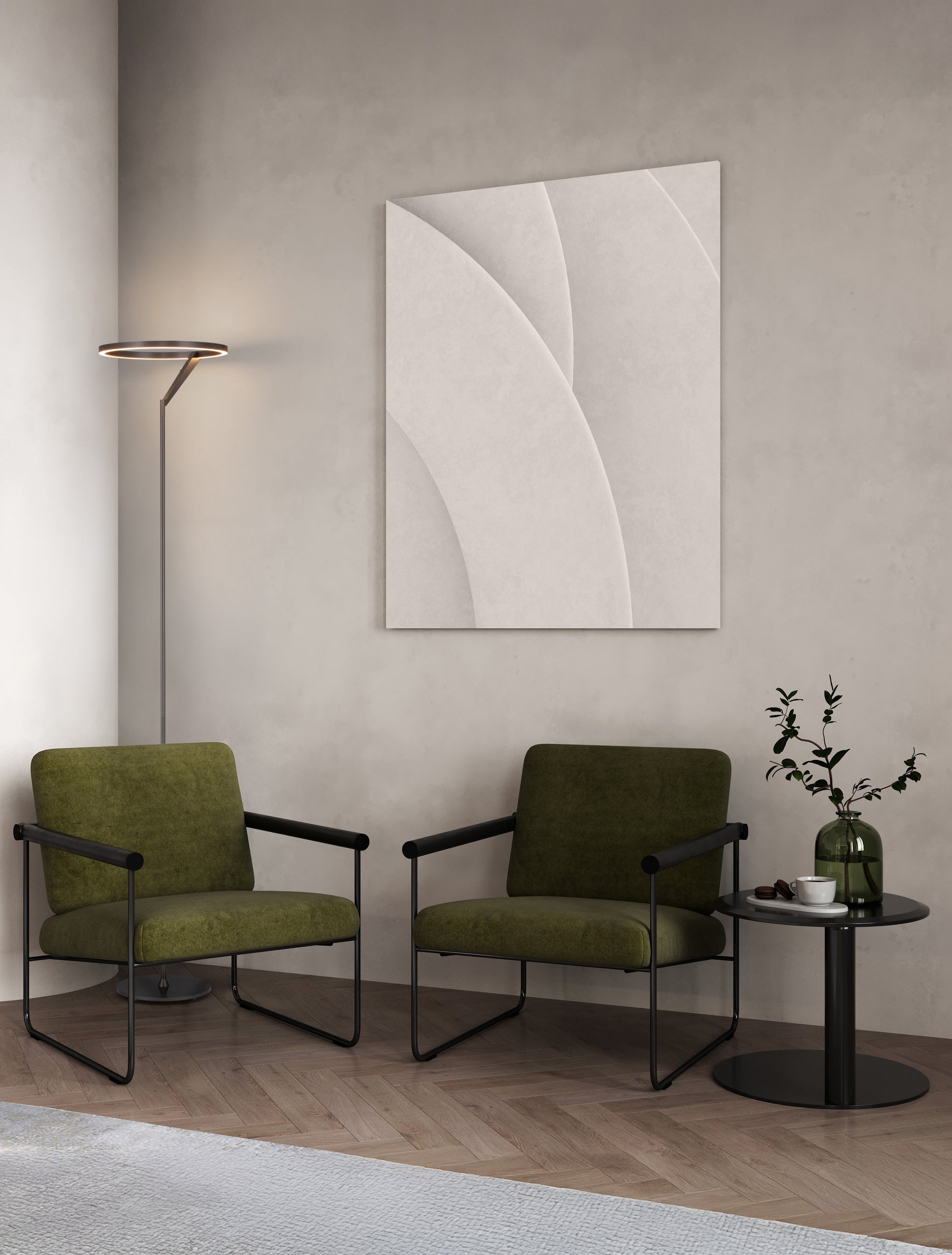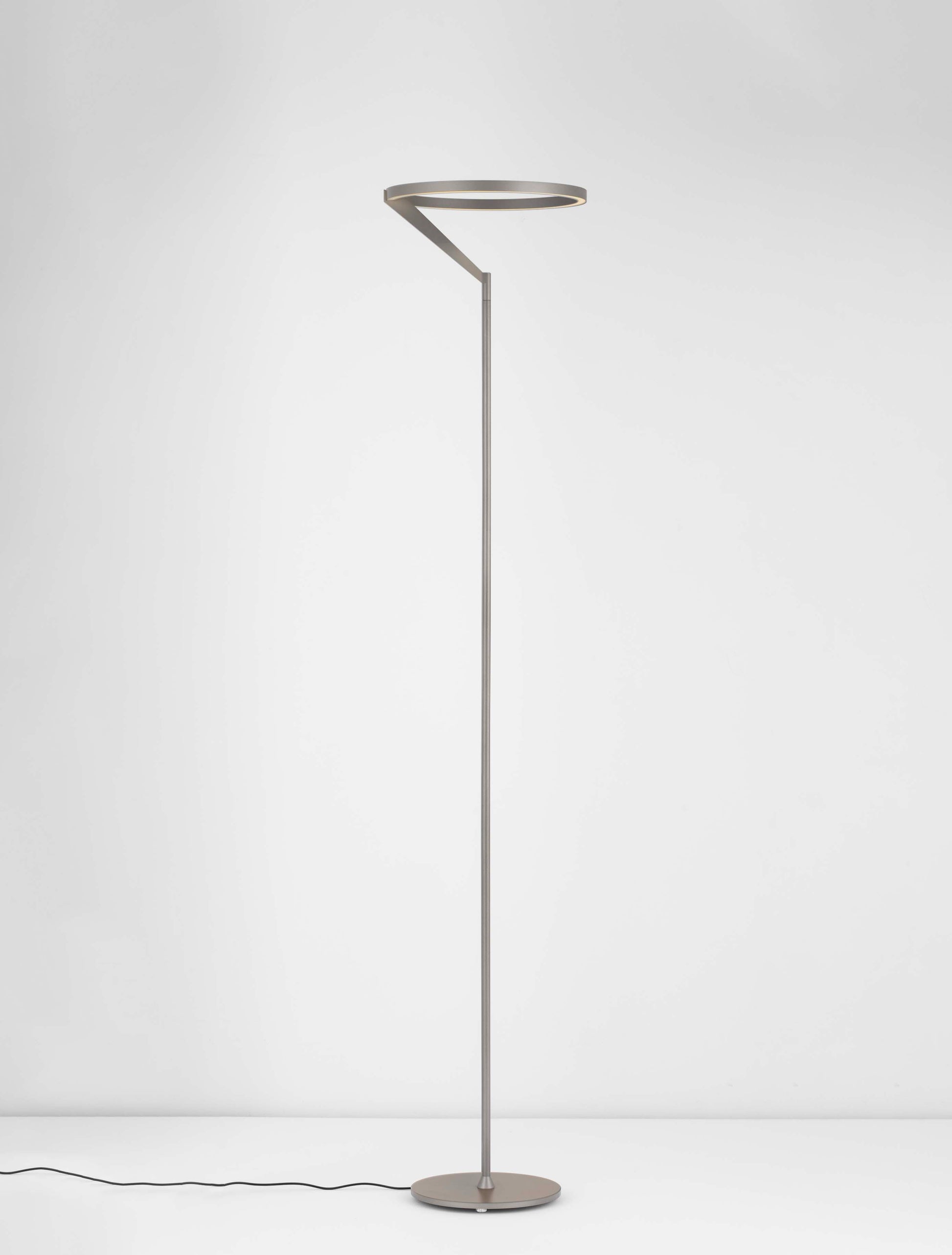 Denne stilige gulvlampen kombinerer et moderne design med praktisk funksjonalitet. Den er perfekt for bruk i stuen, soverommet eller et annet rom der du trenger en både funksjonell og dekorativ belysning.